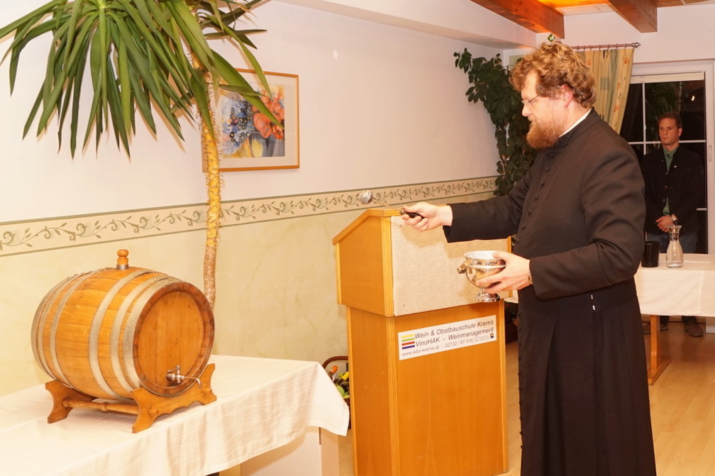 Mit dem Zeichen des Kreuzes und der gehörigen Menge an Weihwasser wurde um Gottes Segen für den Weinjahrgang 2016 gebeten, aber auch für alle Winzer, die mit der Bereitung dieses Naturproduktes befasst sind, und für all jene, die dieses „Biblische Getränk“ in Frohmut genießen werden.